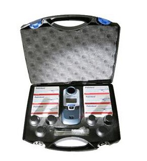 仪器类型 数字直读式光度计 防护等级 IP 67 工作波长 530nm,575nm 显示操作 大尺寸背光 LCD显示屏,按键操作 波长误差 ±2nm 滤光片带宽 10nm 工作温度 0 - 50℃ 空白 /零点 可存于内存中或在每次检测前设置 电源 2 节5号电池供电,自动关机节 尺寸 和重量 长×宽×高150×65×42mm, 200g 测试项目 量程 mg/L 游离余氯(DPD1) 0 - 5.00 游离余氯 (XF)* 0 - 10.0 化合余氯和总余氯 (DPD1+3) 0 - 5.00 化合余氯和总余氯(XT)* 0 - 10.0 氰尿酸 0 - 20.0 pH 6.8 - 8.4 注*只适用于 SPH 003X 订购信息 SPH 003D Pooltest3 标准泳池检测套件 含 Pooltest6 光度计主机、4 支比色管、试管刷、碾棒等 所有配件和操作说明书,置于硬质便携箱中提供。 套件所含试剂:AP 011、AP031、AP 087、AP 130 各 100次。 SPH 003X Pooltest3 高量程泳池检测套件 套件所含试剂更换为 AP 013 和AP 033