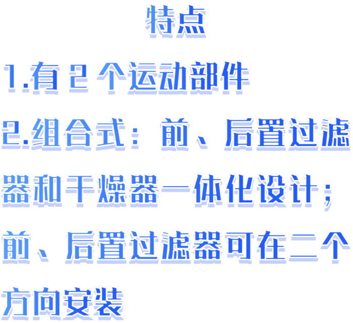 组合式:前、后置过滤器和干燥器一体化设计;前、后置过滤器可在二个方向安装
