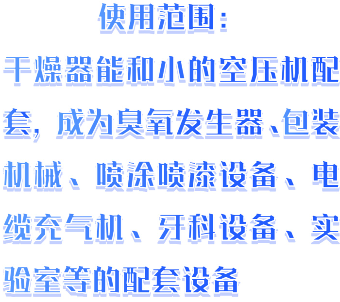 GMWwei型干燥器能和小的空压机配套,成为臭氧发生器、包装机械、喷涂喷漆设备、电缆充气机、牙科设备、实验室等的配套设备