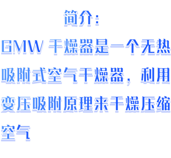 GMWwei型干燥器是一个无热再生吸附式空气干燥器,利用变压吸附原理来干燥压缩空气。