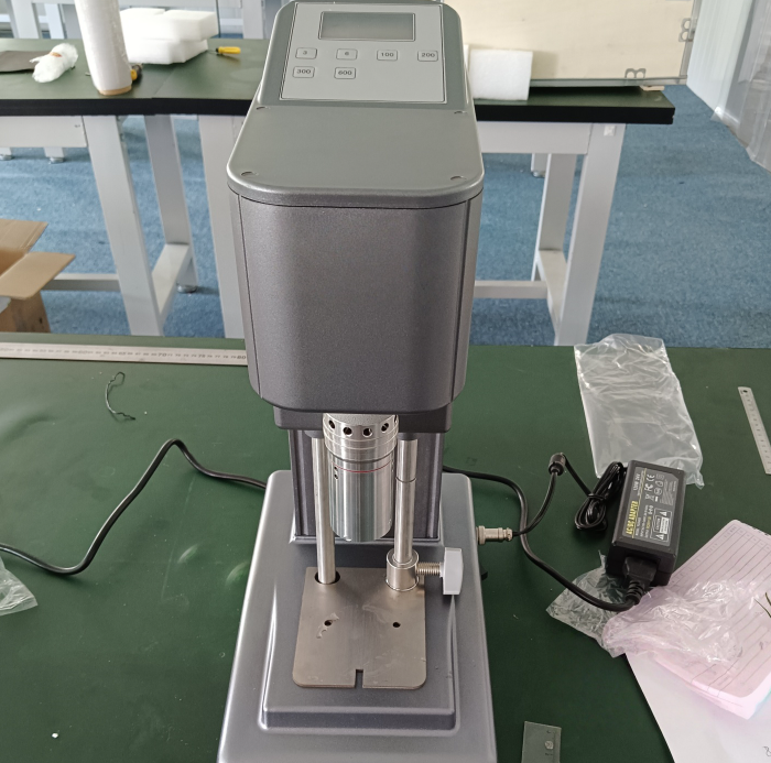 可直接读取数据的粘度测量仪器,粘度测量时,当外套筒以一个设定的速度旋转时,流体会产生一个粘性阻力,由此测出流体的粘度。外套筒通过液体对浮子产生一个扭矩,此扭矩作用于一个弹簧,其挠度可以测量,然后将测量结果与测试条件和仪器常量进行比较。