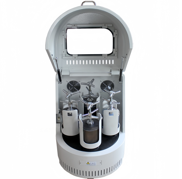 混合、细磨、小样制备、纳米材料分散和小批量材料的装置。是科研单位、高等院校、企业实验室获取微颗粒研究试样(每次实验可同时获得四个样品)的设备,配用真空球磨罐,可在真空状态下磨制试样。应用于地质、矿产、冶金、电子、建材、陶瓷、化工、轻工、医药、美容等部门。可以根据工艺要求设定转速、正反转交替时间、和总的研磨时间。