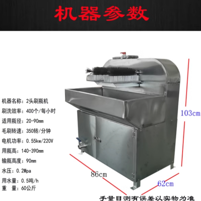 双头半自*动洗瓶双头半自*动机刷瓶机适用于鲜奶吧组培育苗啤酒瓶广口瓶