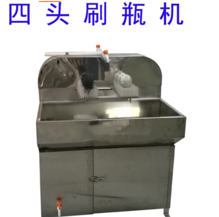 接通电源、水源、气动机器,此时机器的动毛刷开始旋转,将瓶套入动毛刷,用于握住空瓶约两秒,瓶内已洗干净。松开手,让瓶随毛刷旋转约两秒,瓶外即被洗干净。对于一些污垢比较严重的瓶子,本机器配有不锈钢的水槽,将水槽放满水后,