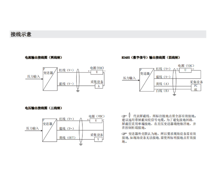 输出:4~20mA、RS485、0~5VDC、0~10VDC、1~5VDC